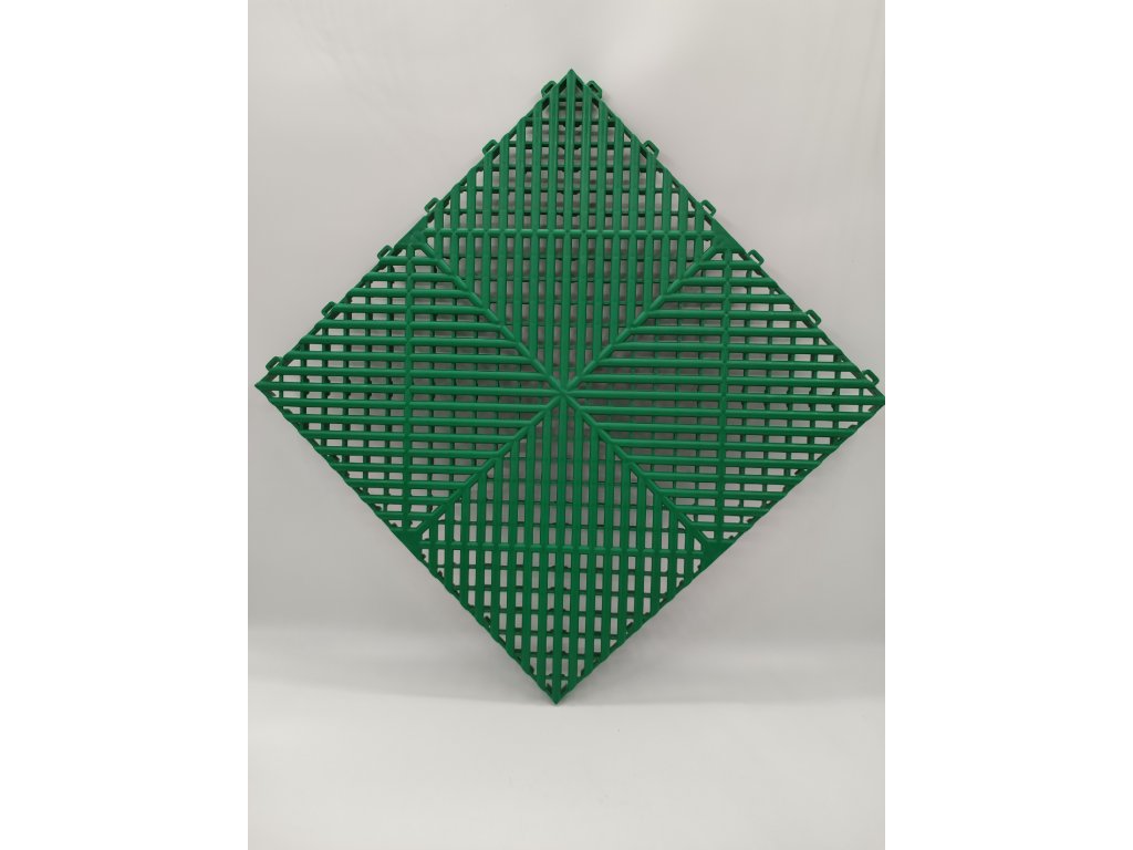 - Zelené plastové dlaždice o rozměrech 40 × 40 × 1,8 cm