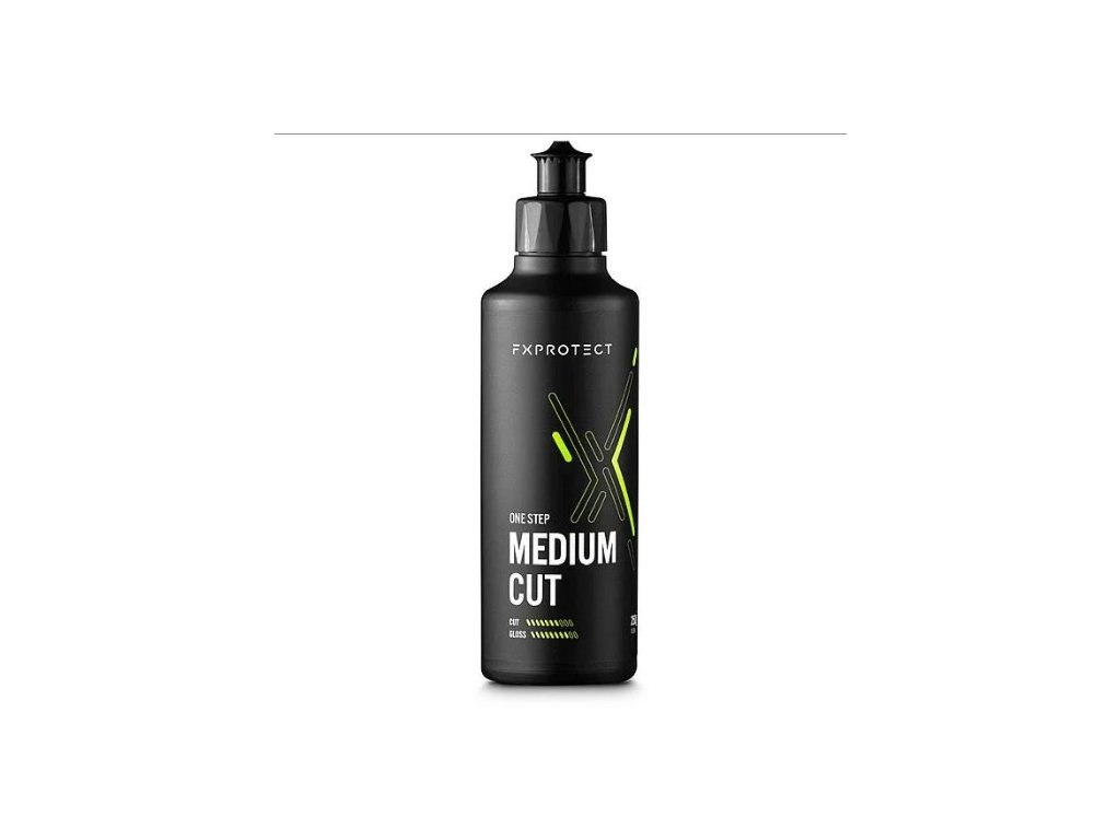 Středně abrazivní leštící pasta MEDIUM CUT / ONE STEP určená k odstranění mírných škrábanců z povrchu laku. Při použití JEDNÉHO KROKU zanechává vysoký stupeň lesku. Odstraňuje poškození po broušení laku o zrnitosti P2000. Vysoce efektivní a málo prašná, díky čemuž zkracuje pracovní dobu na povrchu. Vytvořeno na bázi vody, neobsahuje rozpouštědla ani plniva nebo vosky. Dokonale připraví povrch pro použití leštiící pasty FINE CUT.